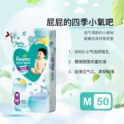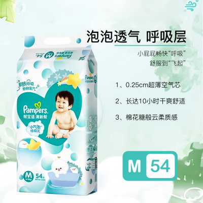 美国 帮宝适(Pampers)清新帮泡泡纸尿裤 M54(6-11kg)新旧包装随机发