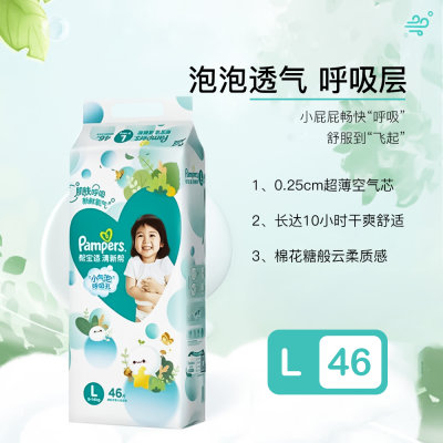 美国 帮宝适(Pampers)清新帮泡泡纸尿裤 L46(9-14kg)新旧包装随机发