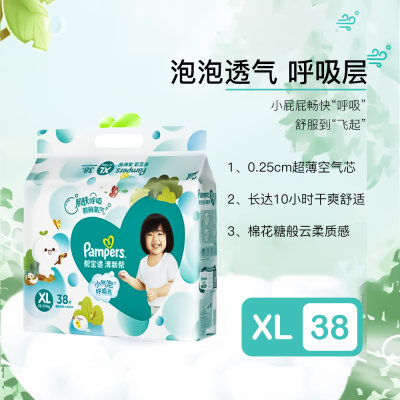 美国 帮宝适(Pampers)清新帮泡泡纸尿裤 XL38(12-17kg)新旧包装随机发