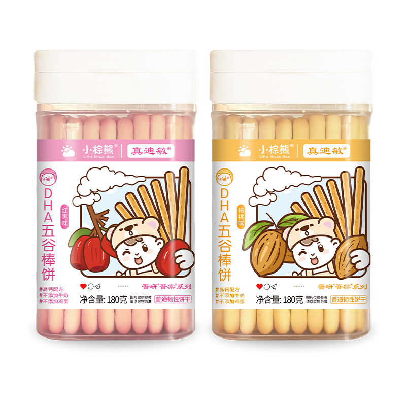 小棕熊DHA五谷棒棒饼红枣 核桃 180克 2口味可选 辅食小零食儿童手指饼干