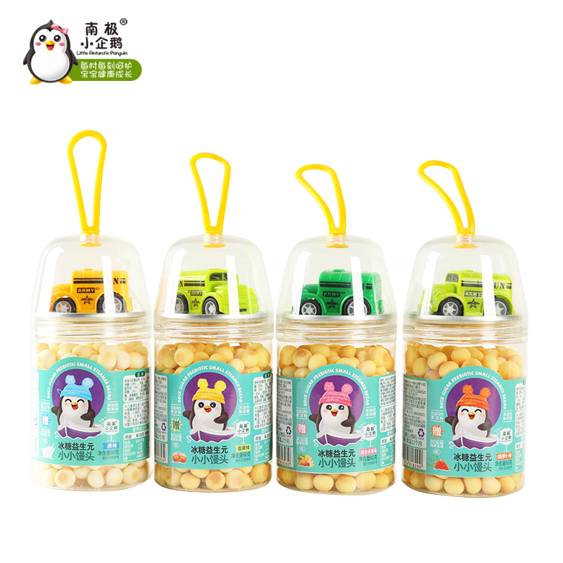 2025年5月新货南极小企鹅 玩具罐冰糖益生元小小馒头 送3C玩具60g4味可选儿童蛋酥
