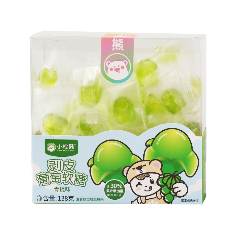 小棕熊PVC透明盒剥皮葡萄软糖138克盒装独立软糖儿童小零食 Q弹 软糯宝宝最爱