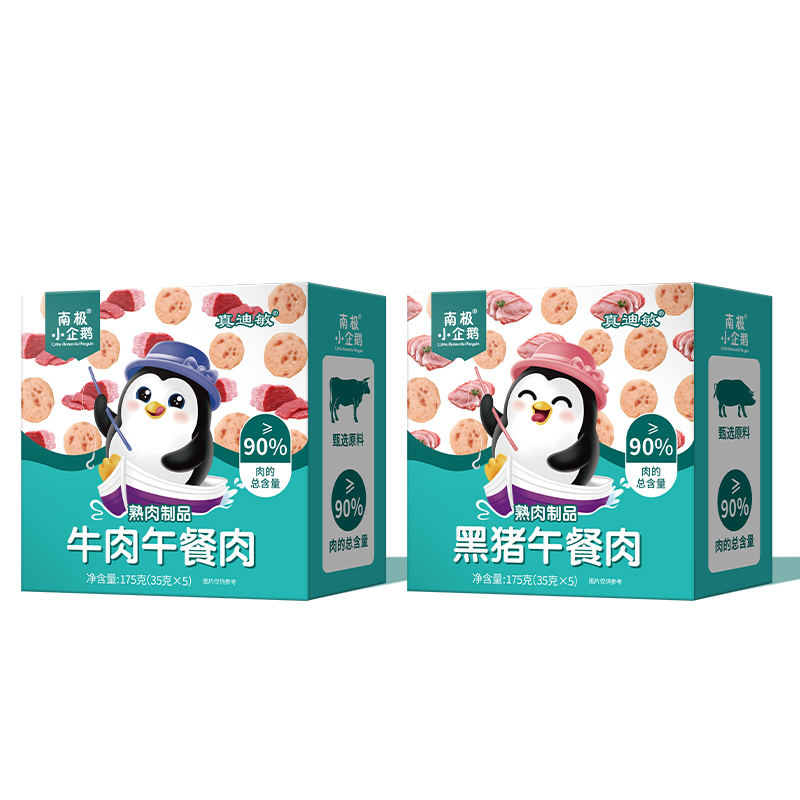 南极小企鹅90%牛肉 黑猪肉 午餐肉(5包)175克 辅食牛肉肠火腿肠小零食儿童