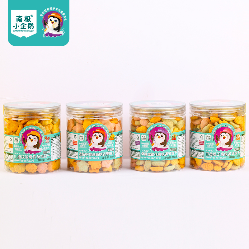 南极小企鹅 高铁多维饼干130克 四种口味低敏配方小零食辅食饼干