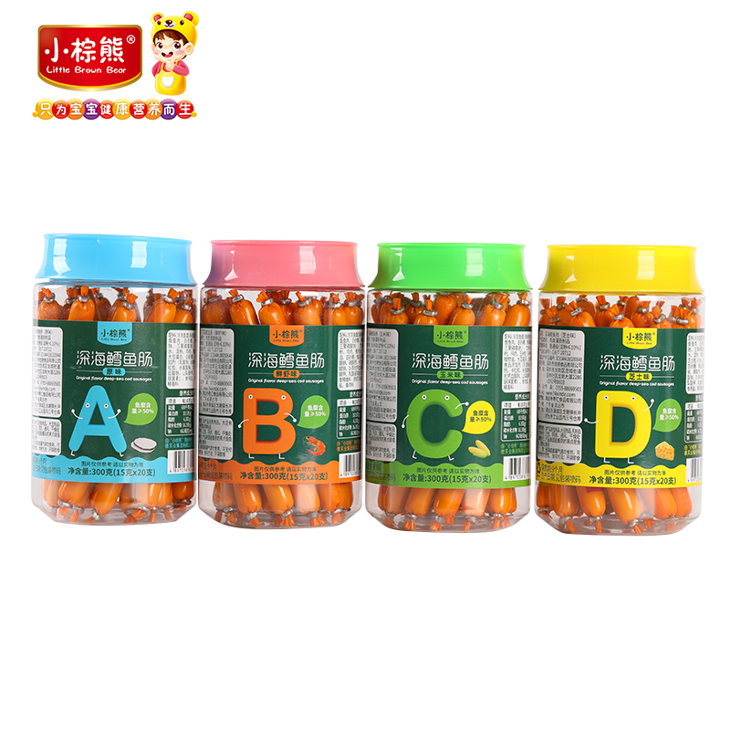 香港小棕熊Little Brown Bear 深海鳕鱼肠300克 4味可选 15克×20支鳕鱼肠儿童小零食火腿肠