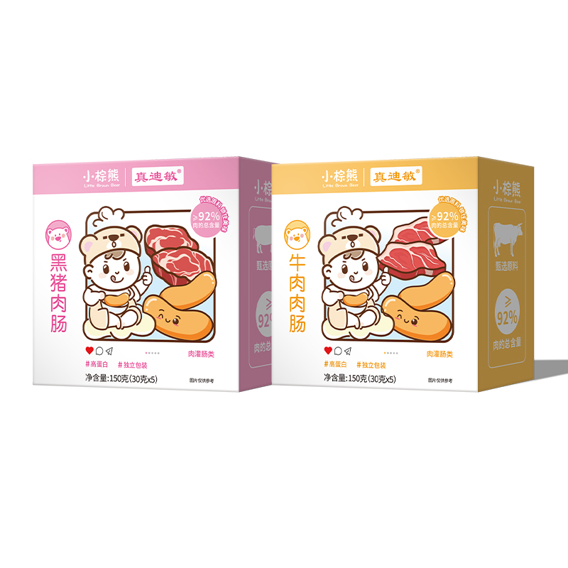 小棕熊92%牛肉肉肠 黑猪肉肠 150克(5包)两种口味 无添加辅食火腿肠小零食儿童牛肉肠