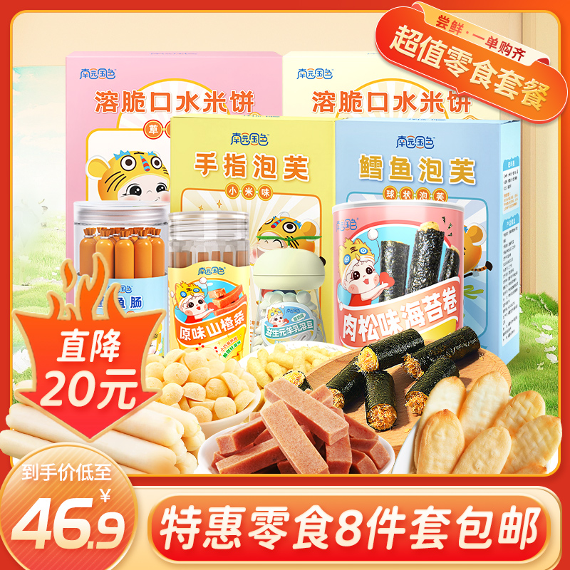 【包邮】南园国色 零食8件 饼干米饼鳕鱼肠溶豆山楂泡芙条儿童小零食非婴幼儿宝宝辅食