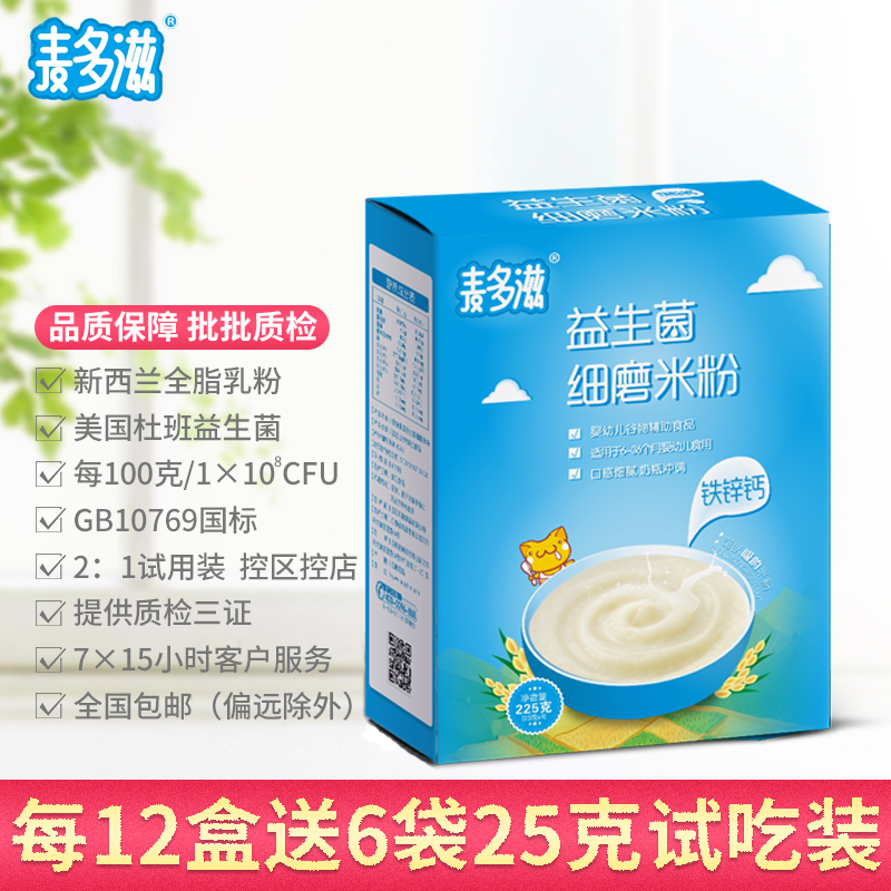 菏仕兰国标婴幼儿益生菌铁锌钙果蔬多口味营养米粉米糊225g盒装