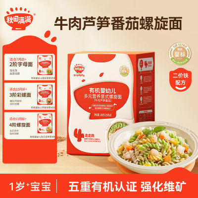 秋田满满 有机婴幼儿多元营养意式螺旋面 牛肉芦笋番茄 200g