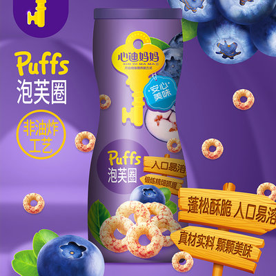 心迪妈妈 泡芙圈 蓝莓味 50g/罐