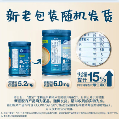 嘉宝(Gerber)1段 胡萝卜营养米粉 250g 新老包装随机发货