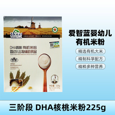 爱智蓝 DHA核桃有机米粉 225g/盒【三阶段 】