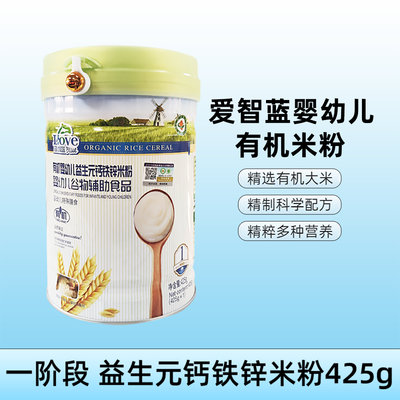 爱智蓝 有机婴幼儿原味米粉 425g/桶【全阶段】