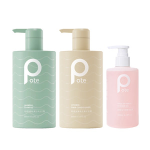 POTE/柏缇洗护三件套去屑滋养洗发露505ml+维生素E护发素505ml+元气桃桃沐浴露200ml