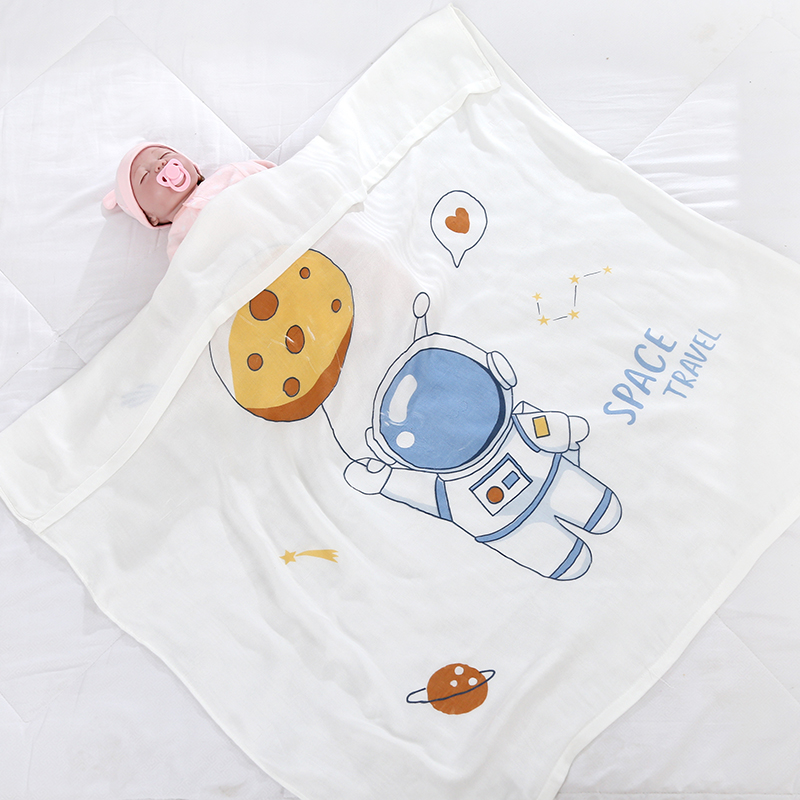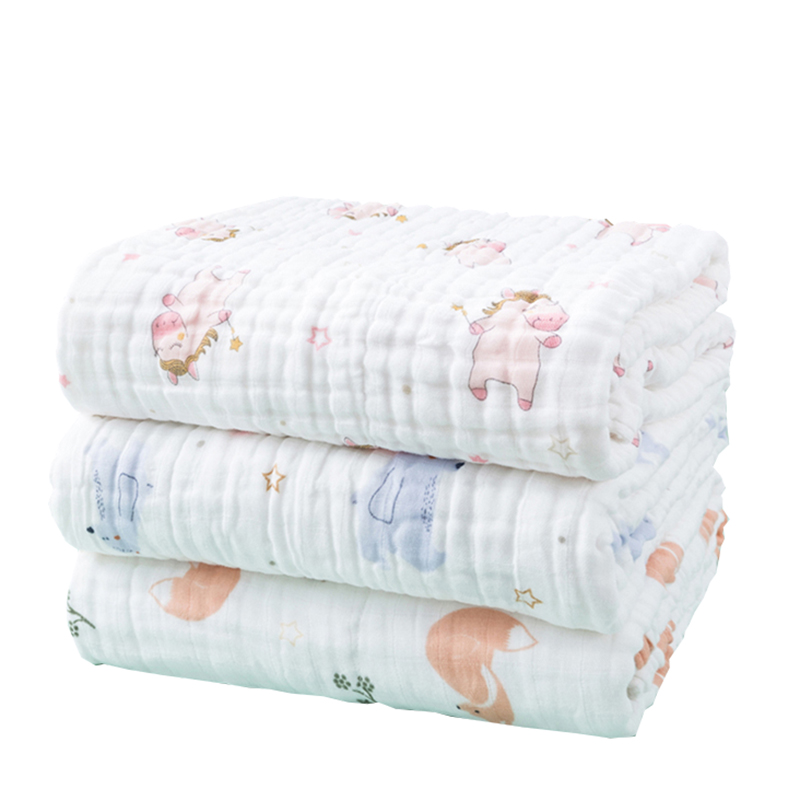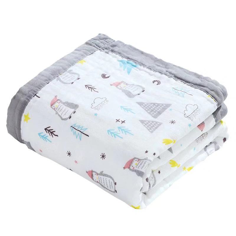 动感光波六层宽边泡泡纱浴巾婴儿纯棉纱布大尺寸被子婴儿抱被六层被子夏凉被