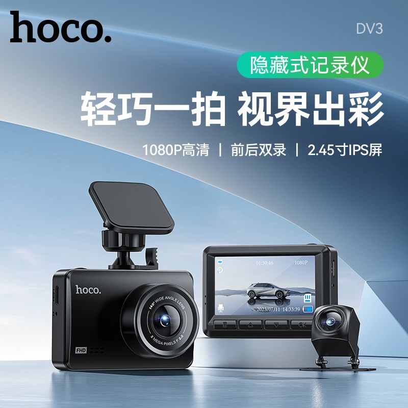 hoco. 屏显行车记录仪DV3(双路带后拉)黑色