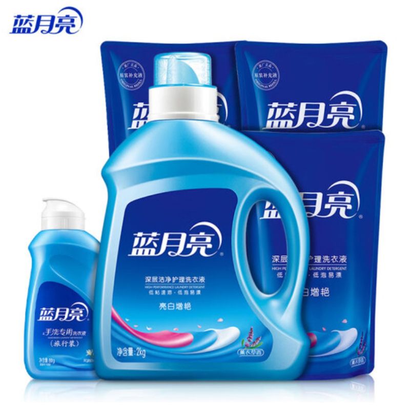 蓝月亮亮白薰衣草洗衣液2kg+袋500g*3+手洗旅行装80g
