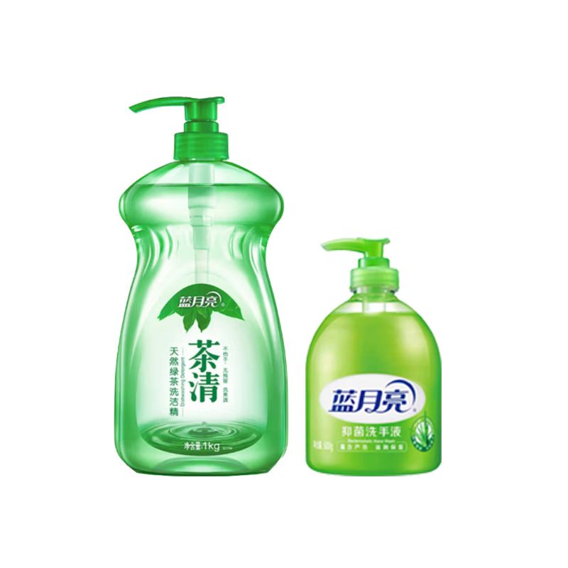 蓝月亮茶清洗洁精1kg+芦荟抑菌洗手液500g