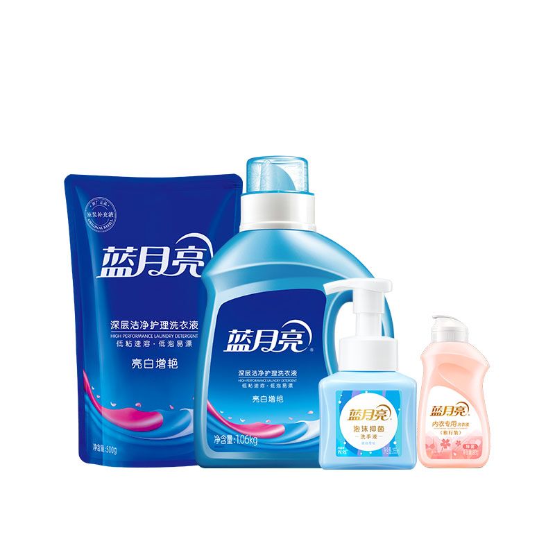蓝月亮洁净馨香礼包 亮白薰衣草洗衣液1.06kg+袋500g+泡沫洗手液255ml+内衣洗衣液80g