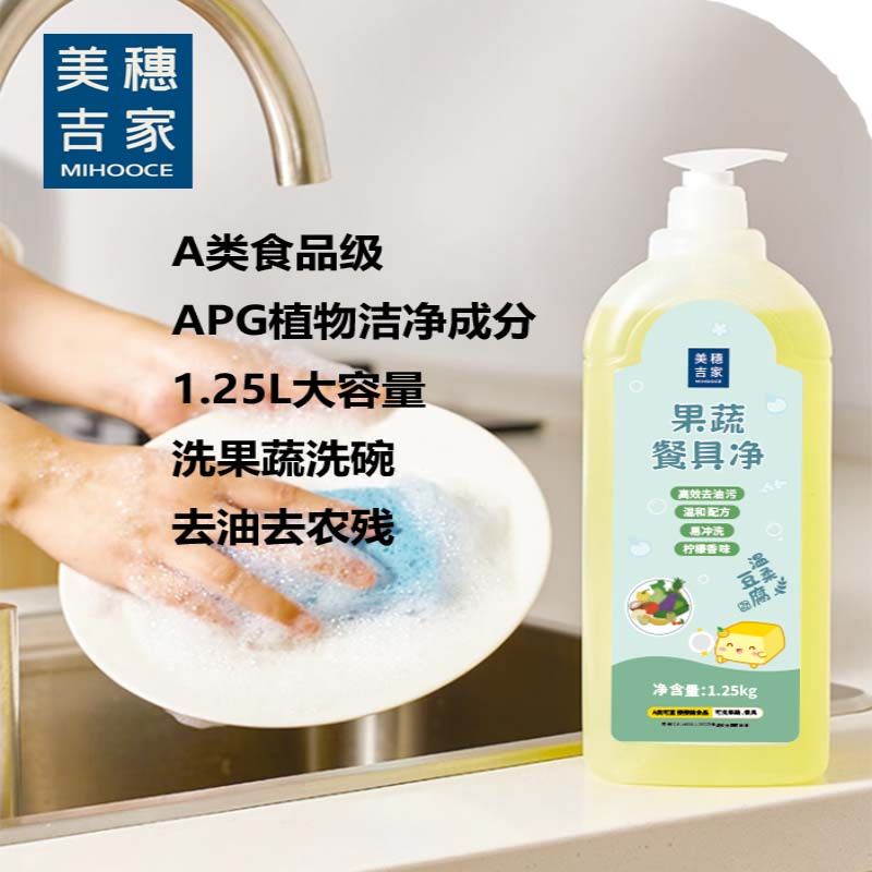 美穗吉家(mihooce)果蔬餐具净去油不伤手洗涤灵除菌食品用餐具柠檬香味 1.25kg/瓶