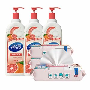 Lam pure/蓝漂厨房清洁组合 西柚洗洁精750ml*3瓶+湿巾40片*3包