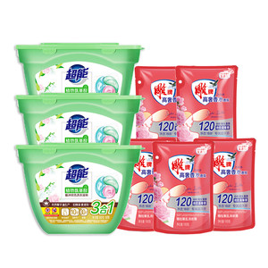 超能植沐悦色洗衣凝珠180g*3盒+雕牌高奢香水洗衣液100g*5袋