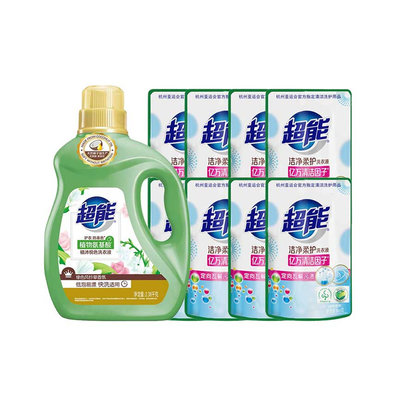 超能 鲜艳亮丽洗衣液6件套 4.6斤(柔护1kg+柔护500g*2袋+悦色100g*3袋)