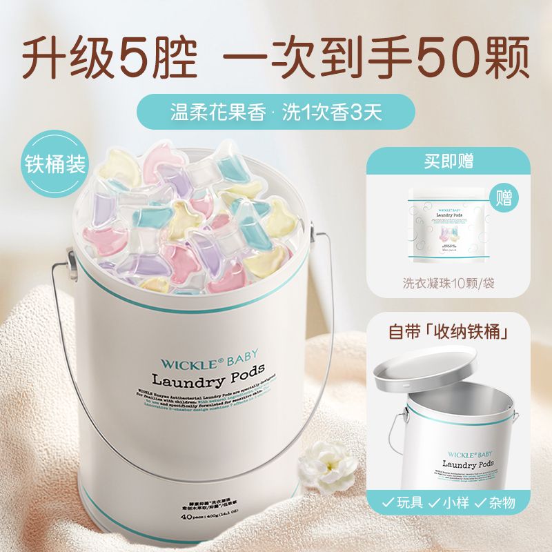 WICKLE惟呵酵素抑菌洗衣凝珠浓缩五腔五合一留香珠护色去渍除菌除螨