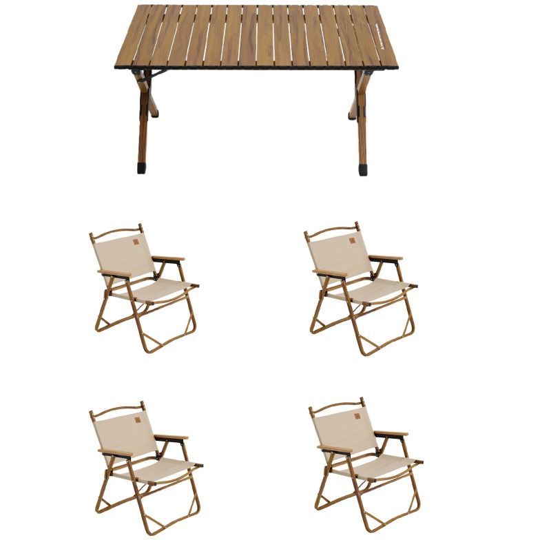错山 铝合金桌椅套装黄桃木色