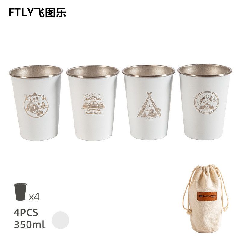 飞图乐 不锈钢露营杯象牙白四件套LYB0101