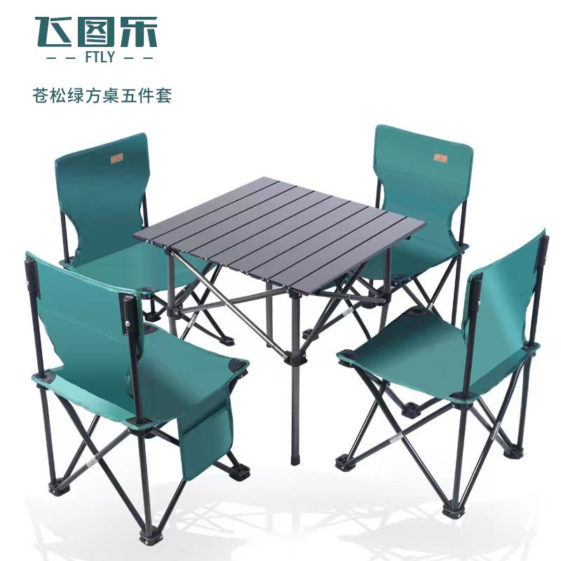飞图乐 苍松绿-铝合金折叠桌椅五件套长桌ZDZY120200