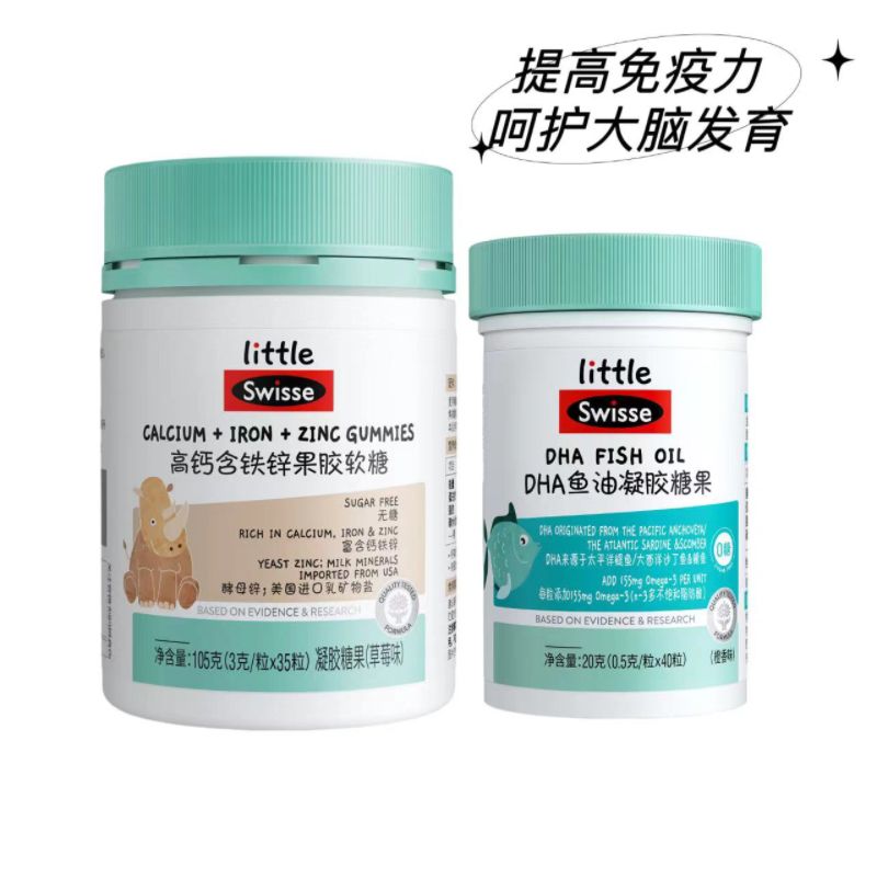 【组合产品】Swisse/斯维诗 钙镁锌软糖35粒+儿童DHA胶囊40粒