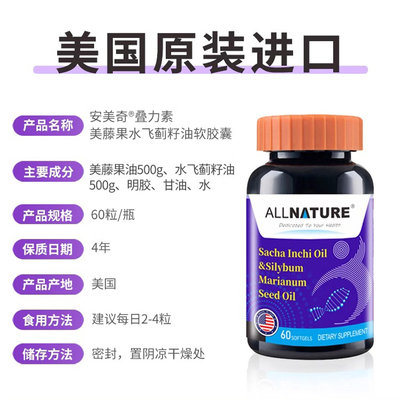 安美奇 ®叠力素®美藤果水飞蓟籽油 60粒/瓶