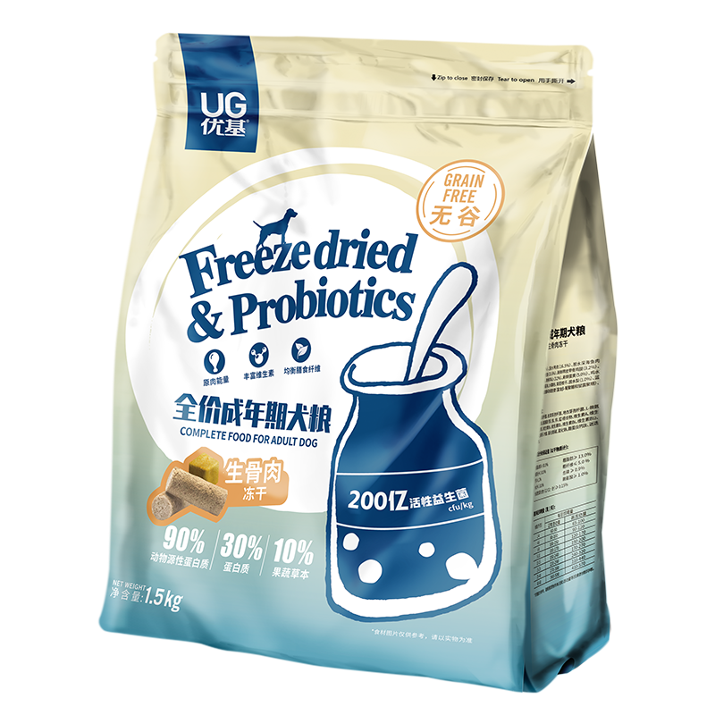 优基 无谷益生菌冻干系列 成犬粮1.5kg/7.5kg
