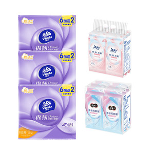 Vinda/维达棉韧抽取式面巾纸100抽*8包*3提+洁柔卫生湿巾10片*6包*2提