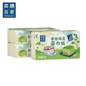美穗吉家原生竹浆4层亲肤绵柔面巾纸60抽*3包