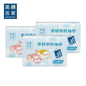 美穗吉家3层原生竹浆柔韧亲肤抽纸130抽*3包