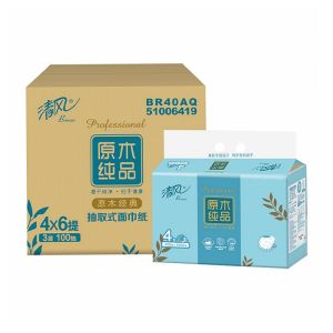 Breeze/清风原木纯品3层四叶草压花抽取式面巾纸整箱100抽4包*6提