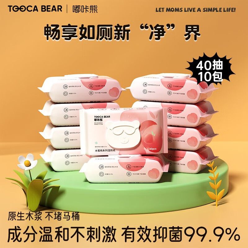嘟咔熊湿厕纸干净舒适抑菌-水蜜桃系列40抽10包