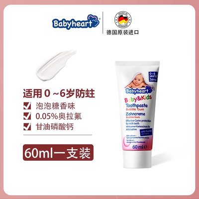 德国 babyheart 儿童温和护齿牙膏 泡泡糖香味 0-6岁 60ml