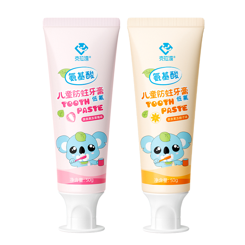 克拉湾儿童防蛀牙膏50g氨基酸果味牙膏宝宝含低氟防蛀牙膏草莓味香橙味可选
