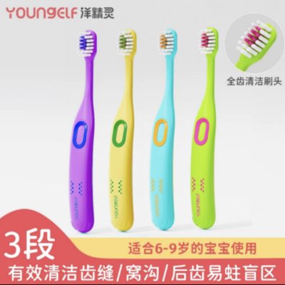 洋精灵(YoungElf)儿童3阶段成长牙刷 单支装 活力黄 6-9岁