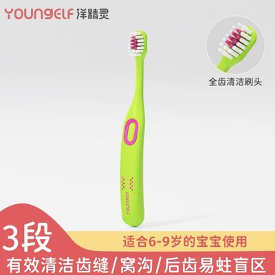洋精灵(YoungElf)儿童3阶段成长牙刷 单支装 欢快绿 6-9岁