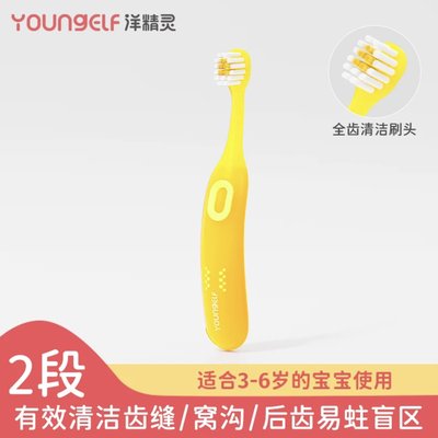 洋精灵(YoungElf)儿童2阶段成长牙刷 单支装 柠檬黄 3-6岁