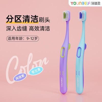 洋精灵(YoungElf)儿童成长牙刷 9-12岁 2支装 风信紫+苍兰青