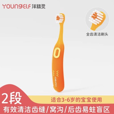 洋精灵(YoungElf)儿童2阶段成长牙刷 单支装 柑橘橙 3-6岁