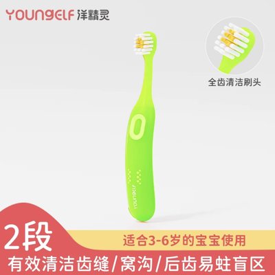 洋精灵(YoungElf)儿童2阶段成长牙刷 单支装 蜜瓜绿 3-6岁