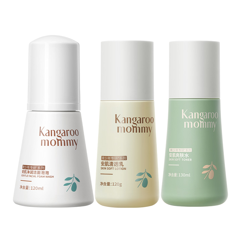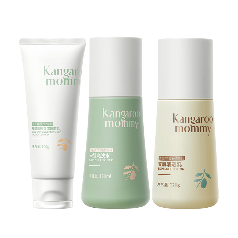 【护肤三件套】袋鼠妈妈青少年护肤品洁面水乳套装控油祛痘洗面奶学生青春期水乳