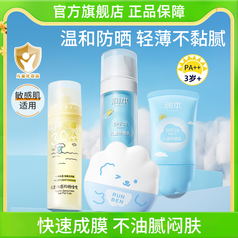 润本儿童防晒霜宝宝男女童专用隔离紫外线学生党敏感肌防晒乳防晒啫喱