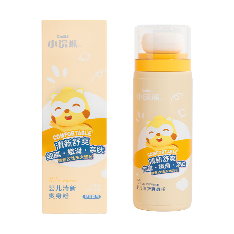 【品牌直供】小浣熊婴儿清新爽身粉110g婴儿宝宝儿童吸汗吸湿粉扑一体式不含滑石粉